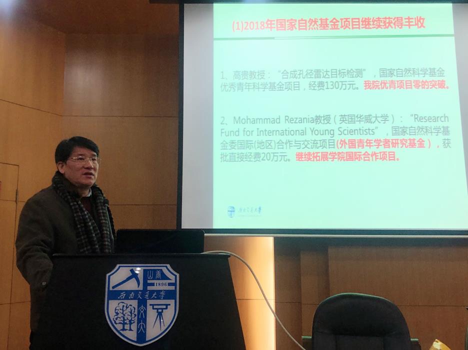刘国祥进行国际化示范学院推进情况汇报与个人述职。重点讲到,学院国际化示范学院的申建过程、学科发展、师资队伍、科研平台、国际化示范学院建设目标与任务等。依托科研平台,推动学院人才培养、科研项目获批数量取得新的突破等。并对新一年的工作重点进行安排布置。