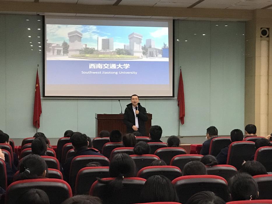 傅尤刚从学校概况、人才培养、毕业去向、招生情况等几个方面展开讲座,让中学生了解到,西南交大有全世界轨道交通领域最完整的学科体系和科研基地;建校以来有59位校友成为了海内外院士,中国轨道交通领域的25位院士全是校友;学校在轨道交通领域学科配套最齐全,专业设置最完善,核心资源最充分,在高铁、磁浮、土木、材料等诸多科学领域、工程领域创造了百余项中国第一和世界第一;交通运输工程一级学科稳居全国第一等等。现场交流环节,学生们讲到,成都是自己一直向往的城市,蘑菇视频
