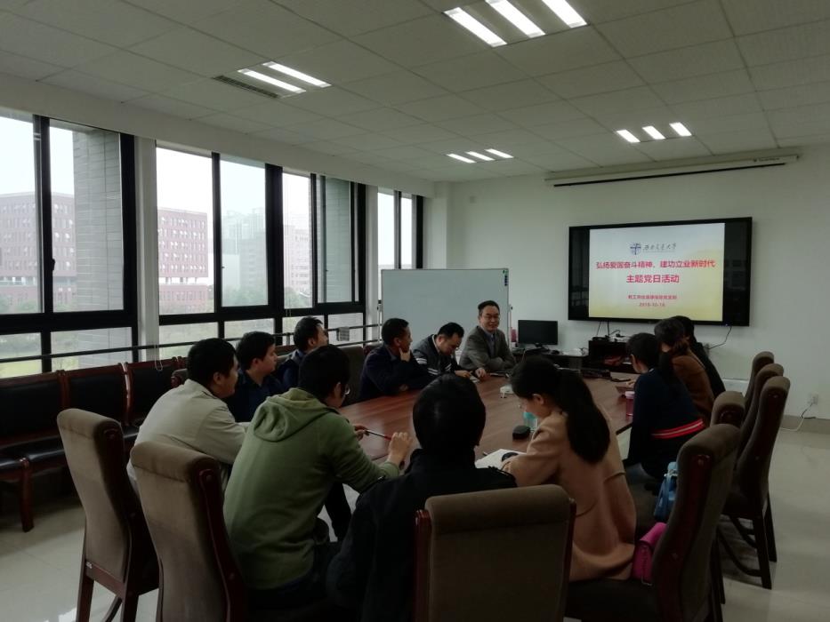 犀浦校区X4431会议室开展了“弘扬爱国奋斗精神,建功立业新时代”主题党日活动,本次会议由党支部书记黄泽纯同志主持。