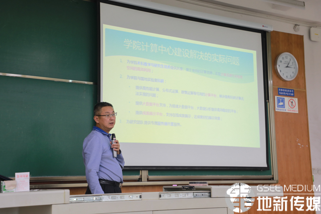 车伟就学院计算中心建设及运行情况进行了汇报。车伟对计算中心的建设方案和使用情况进行了讲解。并对下一步平台的发展提出了自己的看法。