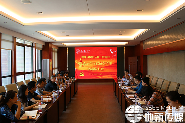 4月26日,地球科学与环境工程学院于x4520召开全面从严治党会议精神传达学习会。学院党委书记王齐荣等党政班子成员、学院纪委委员、教职工党支部书记、系主任、副主任、教职工党员代表参加了会议。学院党委副书记傅尤刚主持会议。