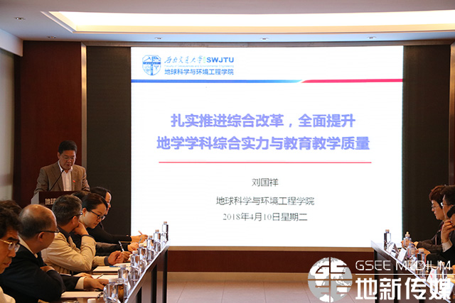 刘国祥以《扎实推进综合改革,全面提升地学学科综合实力与教育教学质量》为题,围绕学院综合改革背景情况介绍、学院综合改革指导思想与目标、主要改革举措及进展、总结与展望四个方面对学院综合改革面临的机遇和挑战进行了汇报。他表示,学院的成绩离不开校领导班子的关心,学院上下备受鼓舞、综合改革势在必行。