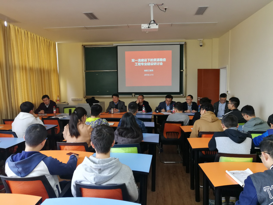 首先,资源勘查工程2017级本科生辅导员李玲,就该班级上学期的学习、生活情况进行简单介绍,对班风学风给予肯定与表扬。参会教师认真听取了每位学生的发言,针对学生对资勘专业发展方向;就业方向;实习机会;考研保研出国等继续深造机会等等困惑。每位老师结合自身从事地质行业的成长经历进行了针对性的解答。并对近几年就业的现状、未来几年专业发展的前景、一级学科与二级学科的关系、所学专业与今后工作的关系、双一流建设下学科的发展等问题同学生进行了热烈的互动交流,明确了双一流建设下资源勘查工程专业未来的发展方向。