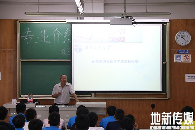 地质工程新生专业介绍会由地质工程系系主任巫锡勇教授主讲。