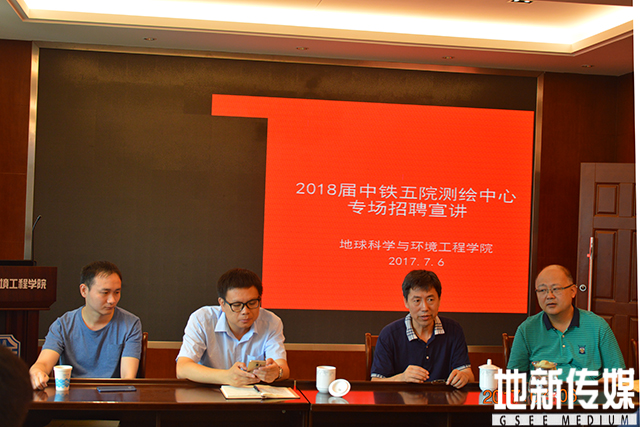 7月6日,中铁第五勘察设计院集团有限公司测绘与地理信息处到我院举办2018届毕业生专场招聘宣讲会,本次招聘会在x4520举行,参加招聘会的有中铁五院测绘与地理信息处周处长一行三人、蘑菇视频
