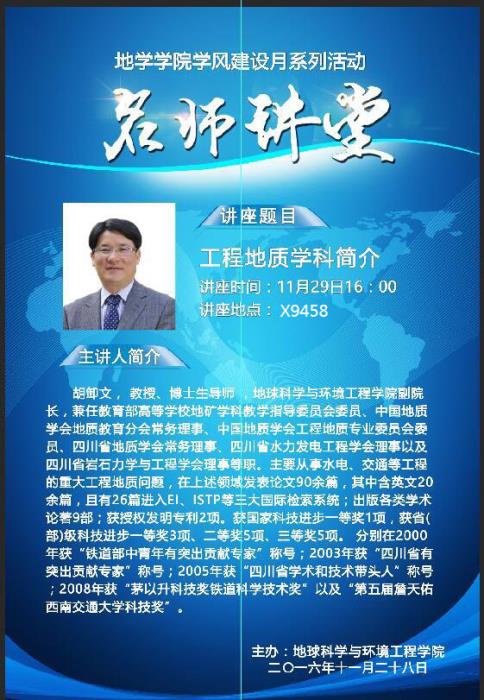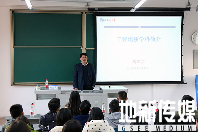 副院长胡卸文教授主讲,以工程地质学科简介为主题。讲座由蘑菇视频
