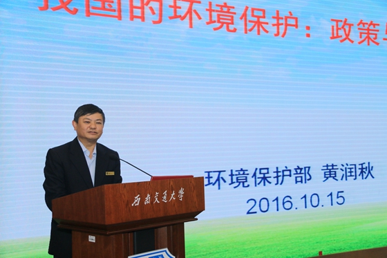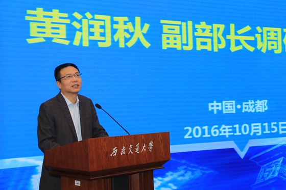 的建设、改革和发展,提供了宝贵的、大力的指导、关心与帮助。”随后,他介绍了我校地质学科的特色与优势。他表示,十八届五中全会提出了创新、协调、绿色、开放、共享五大发展理念。西南交大应当主动响应新时期新阶段环保工作的国家重大需求,努力输出创新型人才、输出创新型成果乃至政策建议和管理建议等。在国家环保部的领导下,守护绿水青山这份功在千秋的伟大事业中,学校应做出一份属于交大人的贡献。