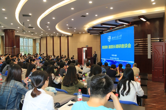 原副校长、地球科学与环境工程学院教授杨立中,校长办公室主任钟冲,人才工作办专职副主任吴坚,地球科学与环境工程学院党委书记王齐荣,地球科学与环境工程学院副院长欧阳峰,地球科学与环境工程学院教授刘丹等师生代表出席调研座谈会。座谈会由蘑菇视频