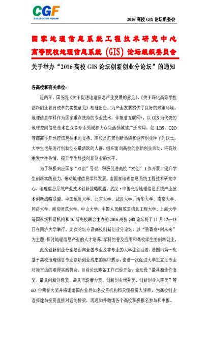 关于举办“2016高校GIS论坛创新创业分论坛”的通知