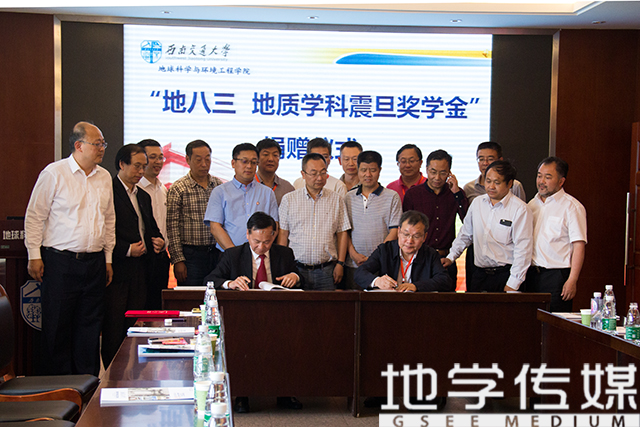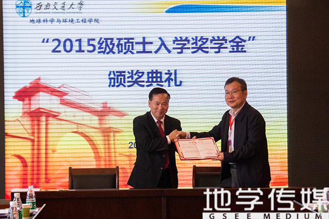 徐瑞堂代表校方和学院层面,与校友代表签署了捐赠协议,并颁发荣誉证书。之后,十位优秀校友向第一志愿报考学校地质学科的硕士生们颁发了奖学金及奖状。学生代表们向学长们表达了感谢。