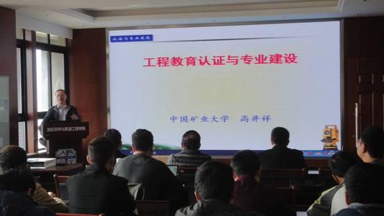 应我院邀请,中国工程教育专业认证测绘组副组长、中国矿业大学研究生院常务副院长高井祥教授2015年11月22日下午来我院作了题为《工程教育认证与专业建设》报告。