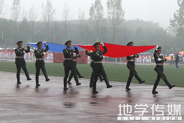 的运动员代表身着蓝色的运动服,用铿锵有力的步伐,洋溢着地学应有的青春与活力。