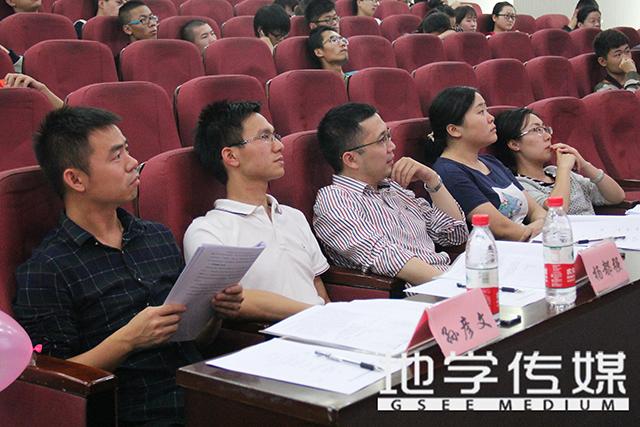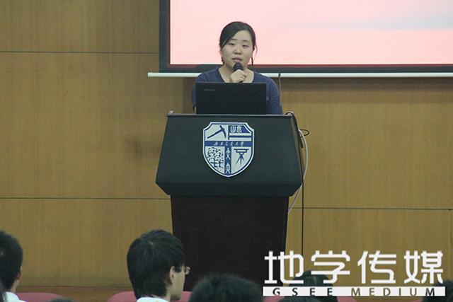 最后登台的是12级博士班地质工程专业的冯君学长。身为博士的冯学长,他的超强学术科研能力从他不多的言语中就得以体现。他的针对大学新生要“作风踏实,转变心态,勇于创新”的告诫令我们受益匪浅。