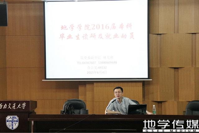 2016届本科毕业生读研及就业动员大会于图书馆二号报告厅顺利举行。地学党委副书记傅尤刚主持活动。该活动是大三系列就业指导讲座的延伸,及迎接大四学习生活之思想动员。