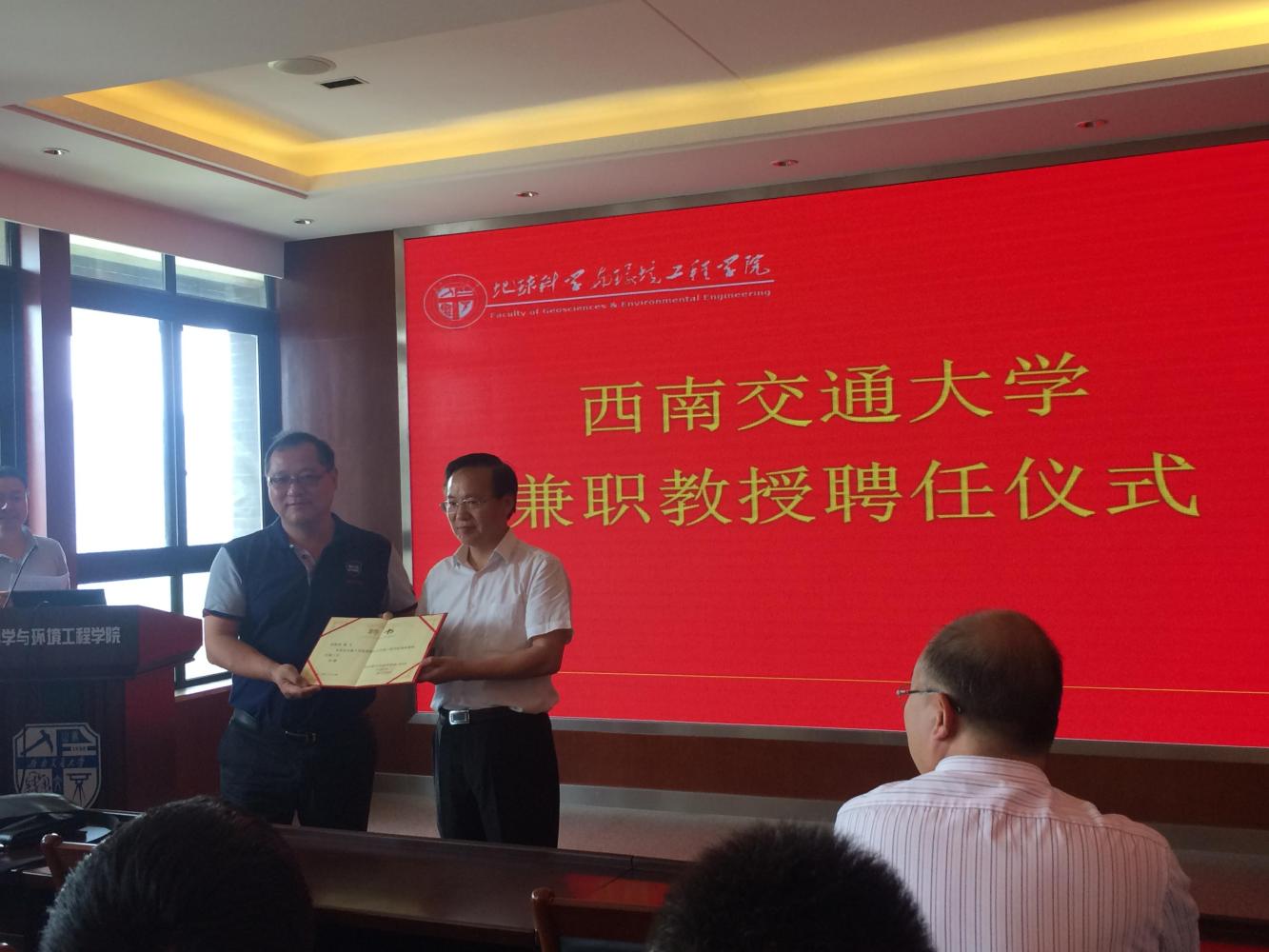 兼职教授。学院党委书记徐瑞堂教授、副院长齐华教授、地质工程系巫锡勇主任等参加聘任仪式。