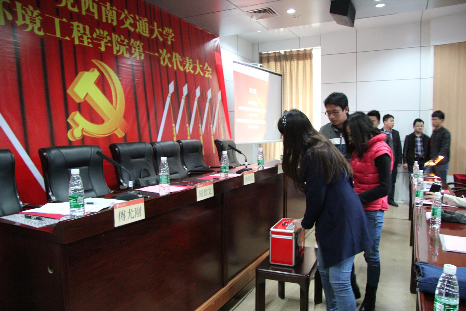 地球科学与环境工程学院委员会换届选举大会选举办法”,并经大会表决一致通过;大会还通过了总监票员、监票员、总计票员、计票人员建议名单。在总监票人蔡红波同志主持下,与会代表认真填写选票并庄严投票。