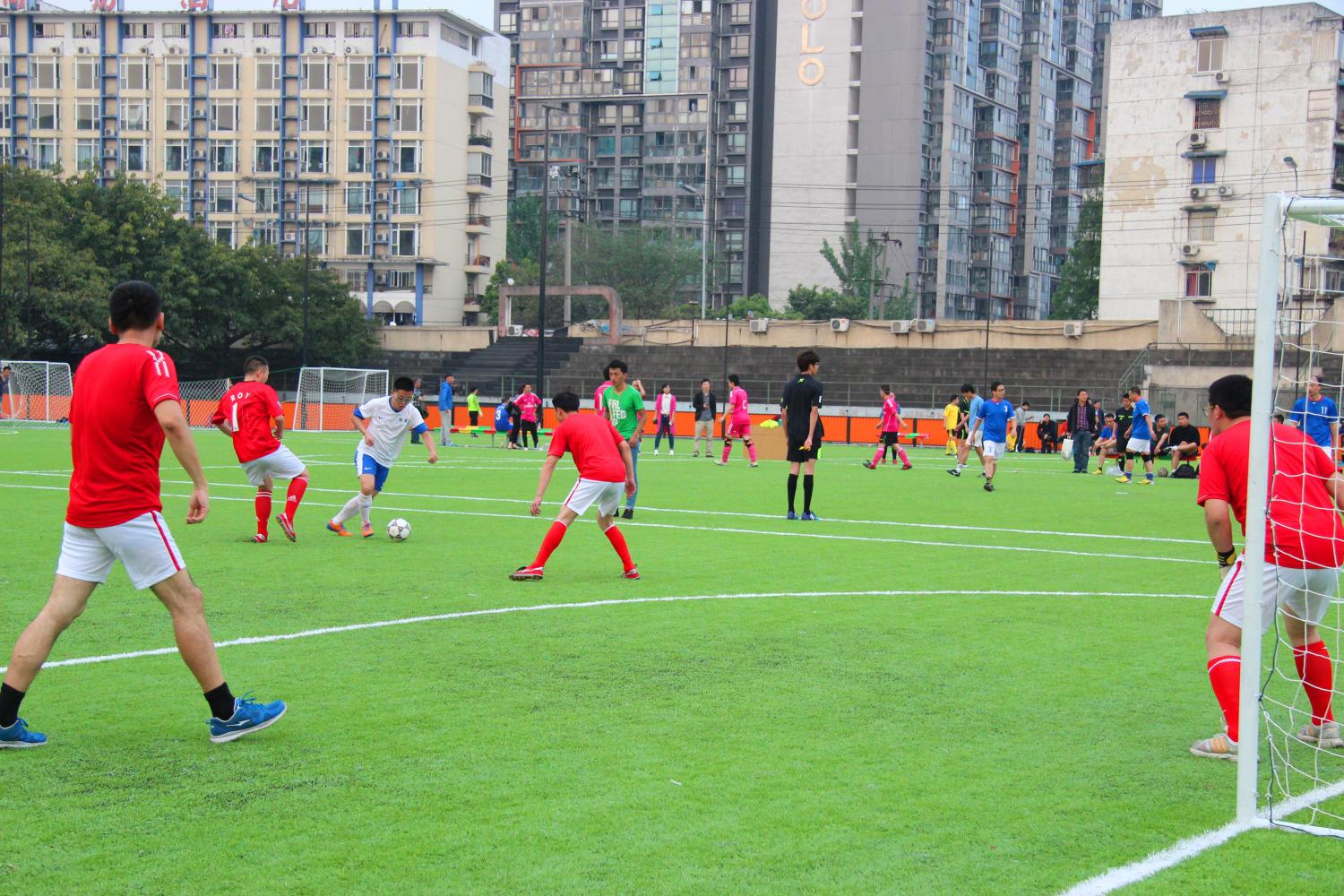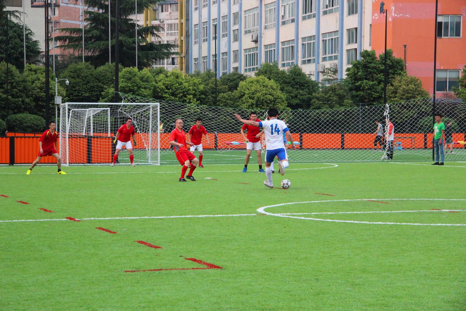 4月13日下午,教工足球赛D组第三场小组赛在九里校区足球场如期进行,蘑菇视频 对阵政治学院,最终我院足球队以5:0,再次获得胜利。院党委书记徐瑞堂、副院长齐华现场观战,全队上下士气大振,配合默契,全场比赛7号队长刘了攻入1球,23号陈建奇送上2球,33号何刘也以2球建功。