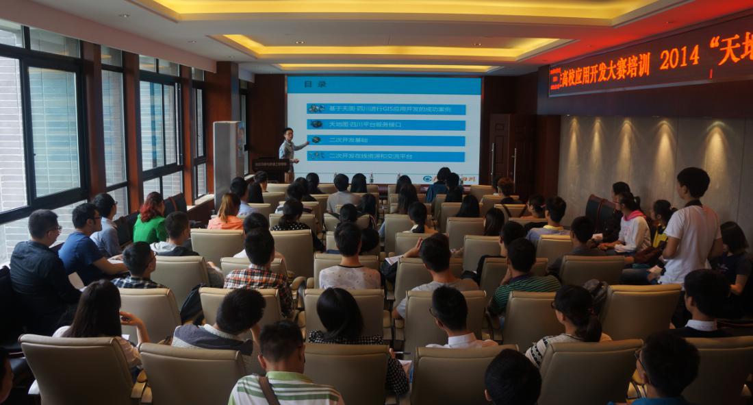 2014年9月27日,“天地图·四川”进高校应用开发大赛培训活动在蘑菇视频