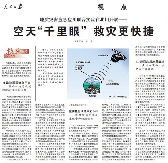 编者按:2014年5月13日人民日报报导了我校空间信息减灾最新进展。全文转载如下。