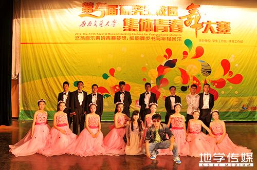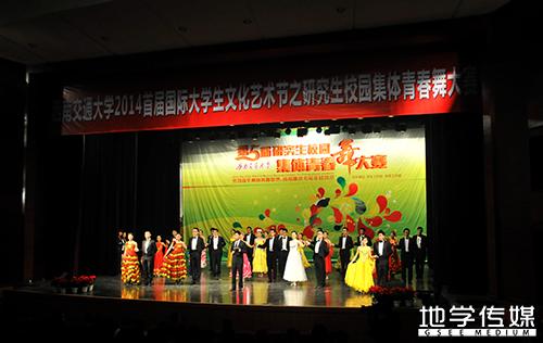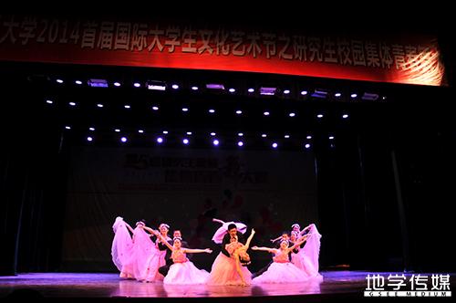 的同学们专业的舞姿伴随着音乐缓缓开始,整齐的动作,默契的交流,飘逸优美的舞姿,为在场的观众和评委老师舞出了地学研究生的青春活力。值得一提的是,最后的一个男生托举女生旋转5圈的高难度动作博得了满堂喝彩。