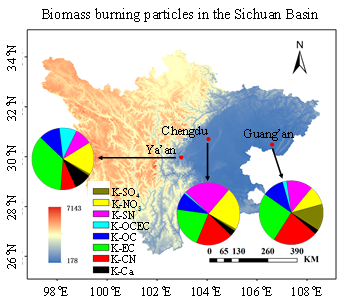 当前,四川盆地已经成为我国灰霾污染的重点区域之一,受其特殊盆地地形和气候的影响,四川盆地灰霾污染呈现出了其独有的污染特征及形成机制。然而,该地区的相关研究数量及深入程度却远不及京津冀、长三角及珠三角等其他重点地区。近年来,张军科副研究员团队联合中国科学院大气物理研究所、中国科学院重庆绿色智能技术研究院、成都信息工程大学、四川省环境监测总站等单位,对四川盆地典型城市生物质燃烧颗粒及富Pb(铅)颗粒进行了针对性研究,相关成果如下:
