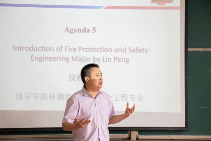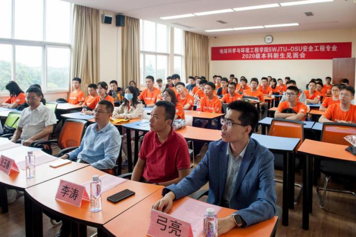 地球科学与环境工程学院书记关秦川、副书记(副院长)许军华、副书记傅尤刚、副院长张玉春、消防系副主任林鹏教授、李涛副教授、弓亮副教授,项目部行政老师干敏、郑容、陈茜及2020级辅导员王琼,安全工程专业(中外合作办学)本科2020级全体新生参加。本次活动由地球科学与环境工程学院副书记(副院长)许军华主持,他首先转达了Lutz Plümer院长和刘国祥执行院长对2020级新生的诚挚问候。