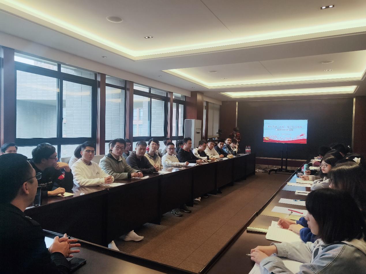 党委副书记傅尤刚于X4520会议室为本2017级联合党支部讲授“深入学习‘四史’,坚守初心使命”专题党课。本2017级联合党支部全体同志参加专题党课。