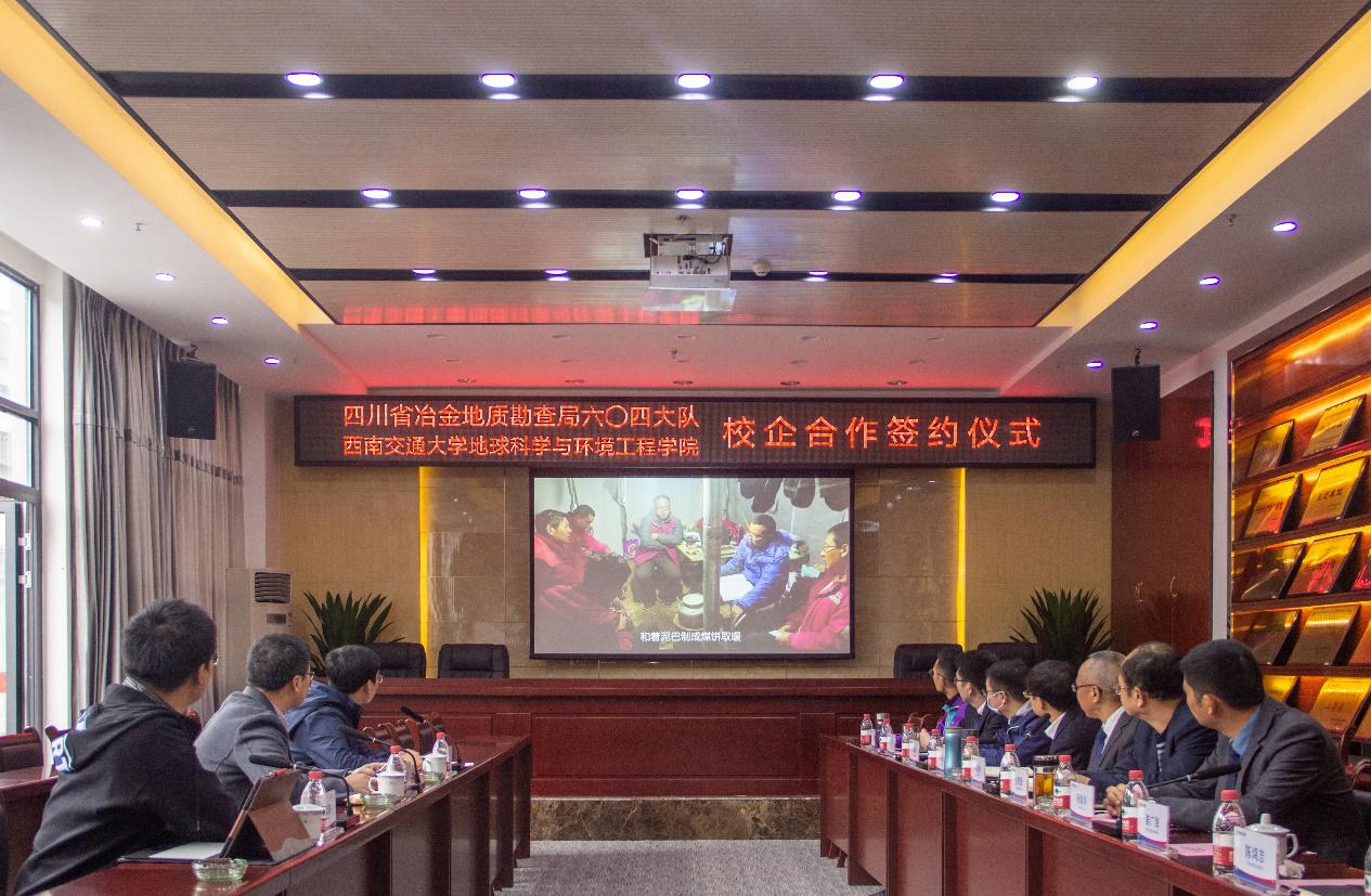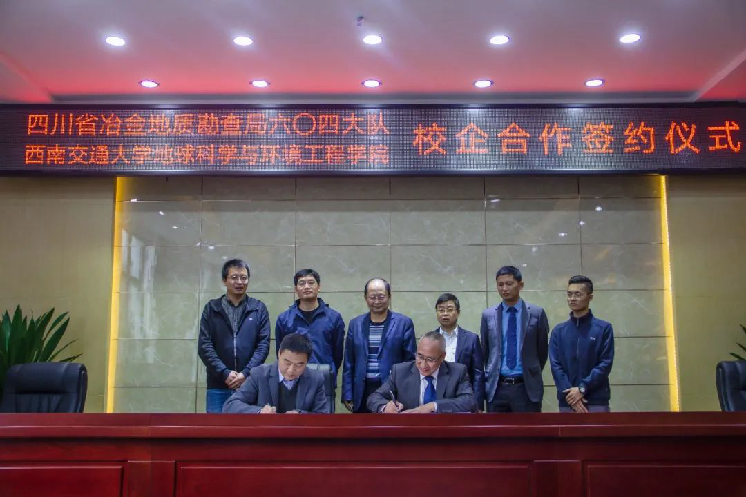 地球科学与环境工程学院关秦川书记一行3人拜访四川省冶金地质勘查局604队(广元),双方签署了校企合作框架协议,并为“教学实习基地”进行了揭牌。