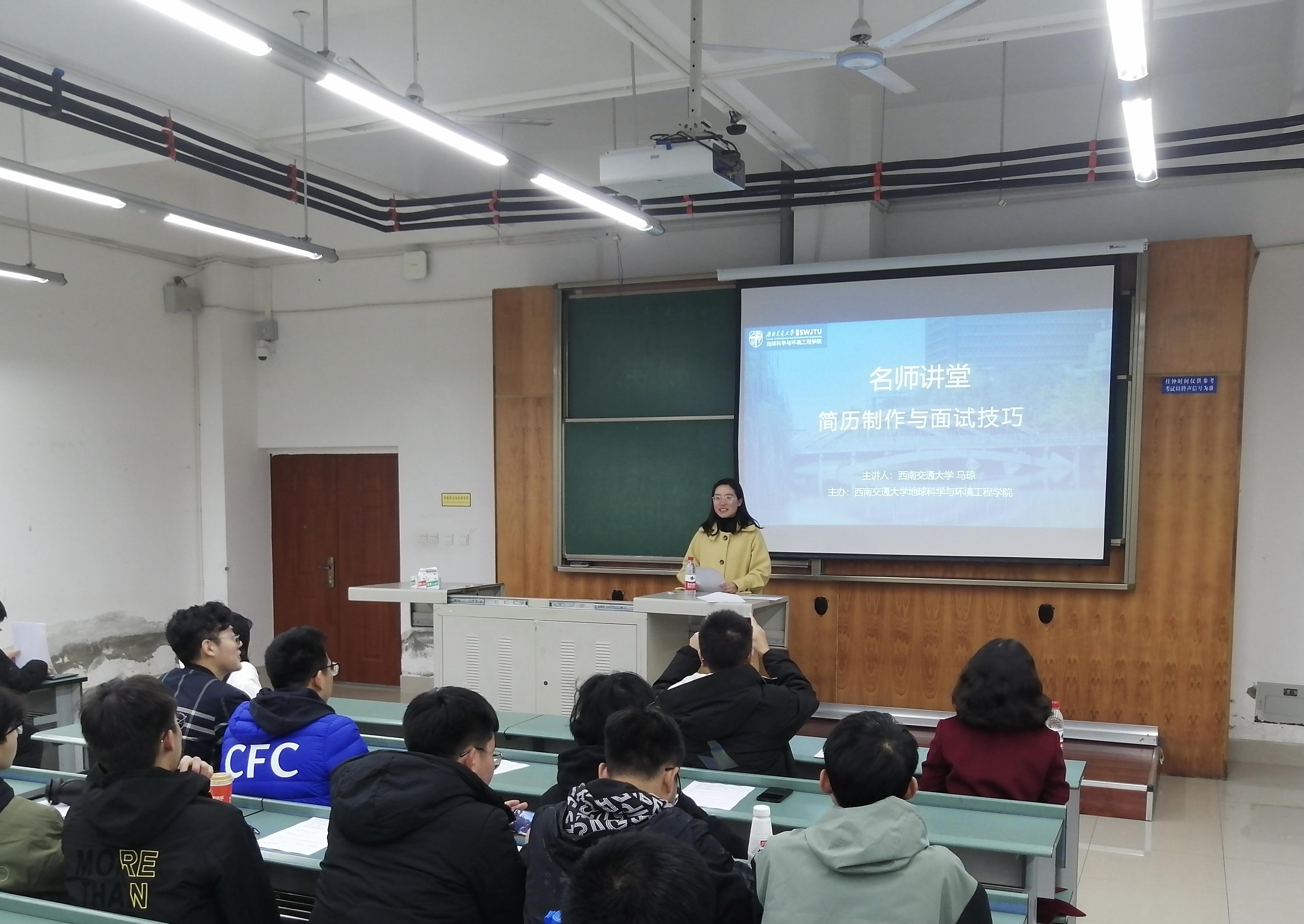 11月24日晚,地球科学与环境工程学院邀请信息科学与技术学院党委副书记马琼于犀浦校区X4151开展简历制作与面试技巧专题讲座。蘑菇视频