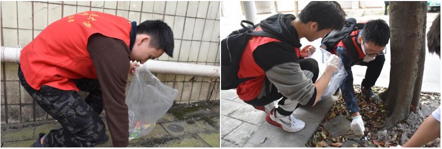 活动中,同学们穿梭于草丛间、角落里,不放过任何一个地方,一个个争先恐后、不怕脏、不怕累,将塑料袋、废纸以及各类废弃物品,收集到各自准备的袋子中。