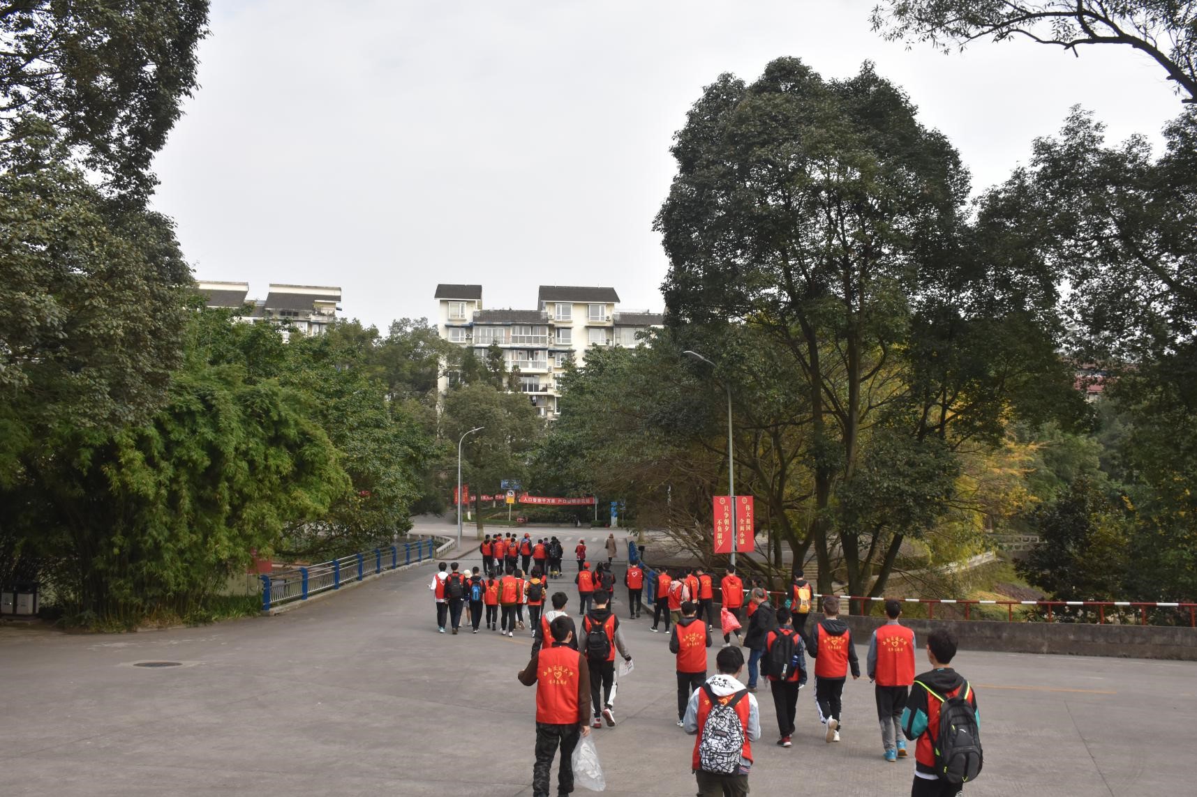 峨眉校区集合,两三人一组,清理峨眉校区内的垃圾。
