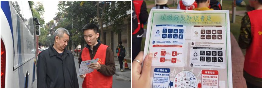 同时同学们和老师还通过向路人发放知识宣传册的方式,讲解垃圾分类知识,特别是对峨眉山市居民、游客等人群进行重点宣传。
