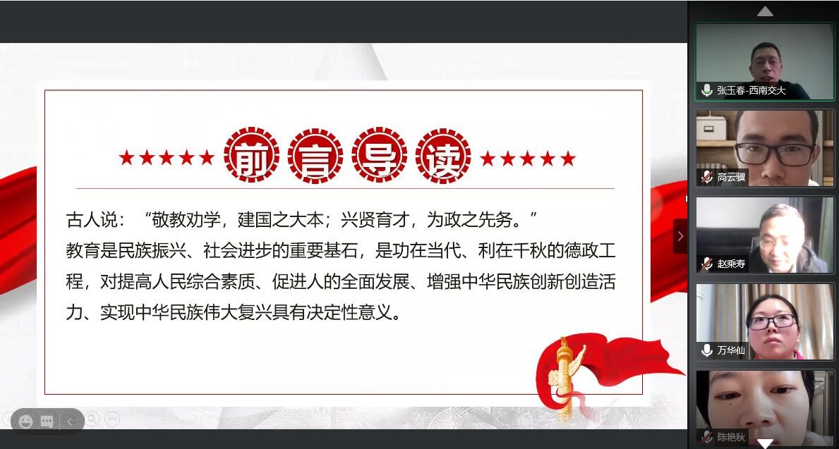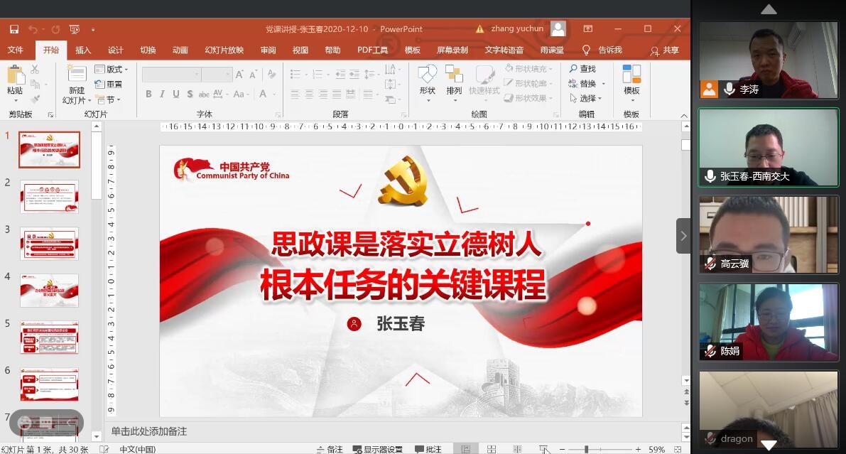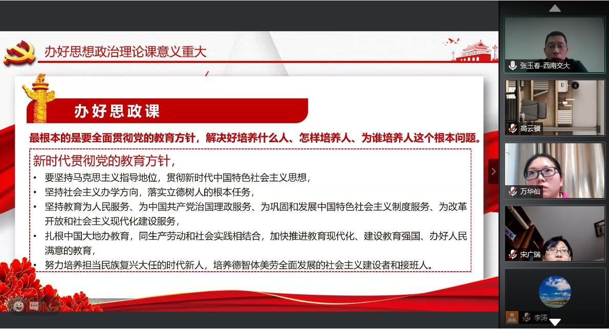 党委委员、副院长张玉春教授给教工消防党支部讲授了《思政课是落实立德树人根本任务的关键课程》和《专业课程融入思政工作的教学设计理念与方法》专题党课。由于受近期成都新冠疫情的影响,本次党课采用线上形式,会议平台为腾讯会议(会议ID:634 962 758),消防工程系全体教师参加了本次会议。