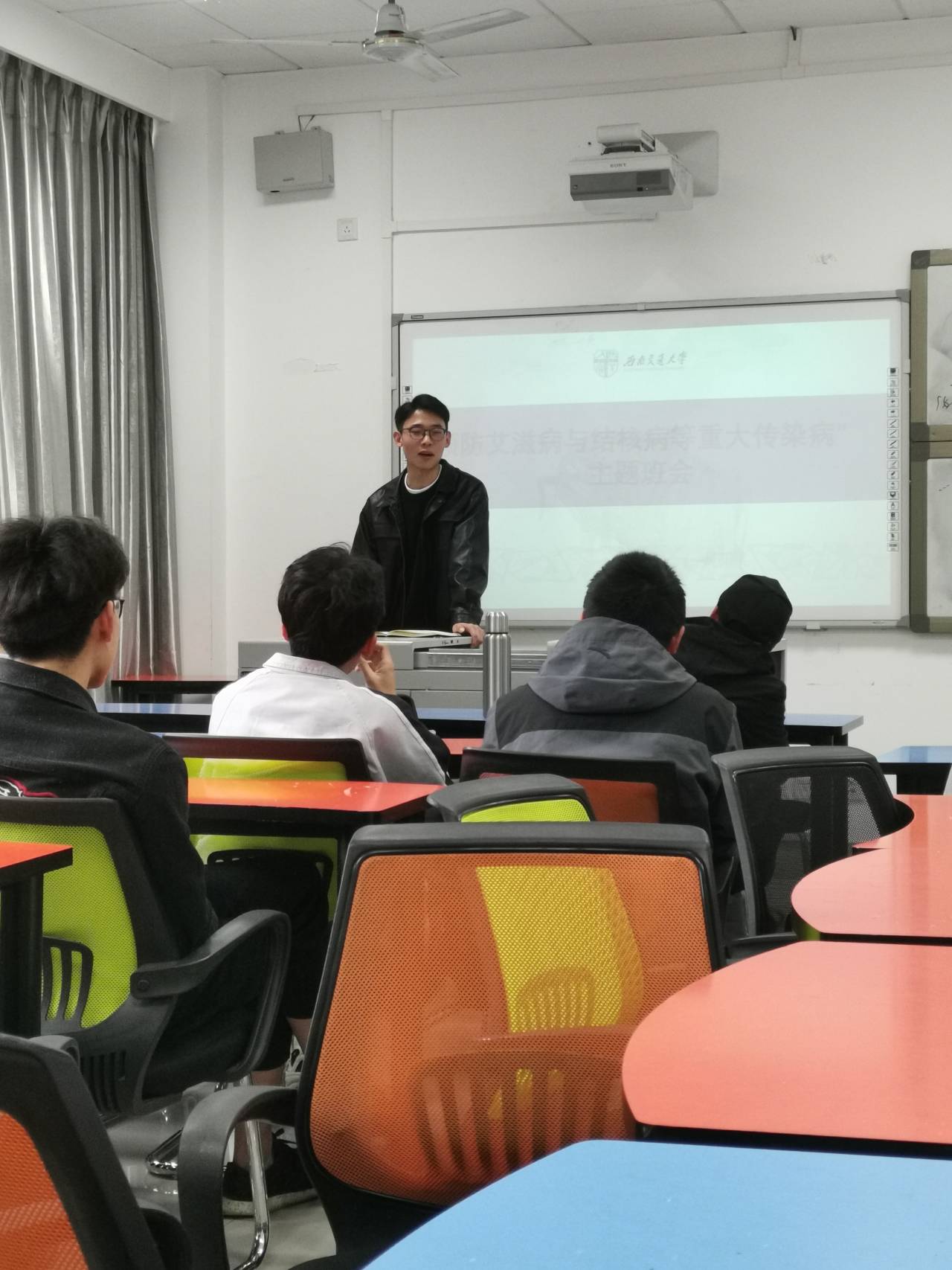 学生工作组安排各辅导员有步骤分批次的开展以“防治艾滋病、结核病等重大传染病”为主题的主题班会。