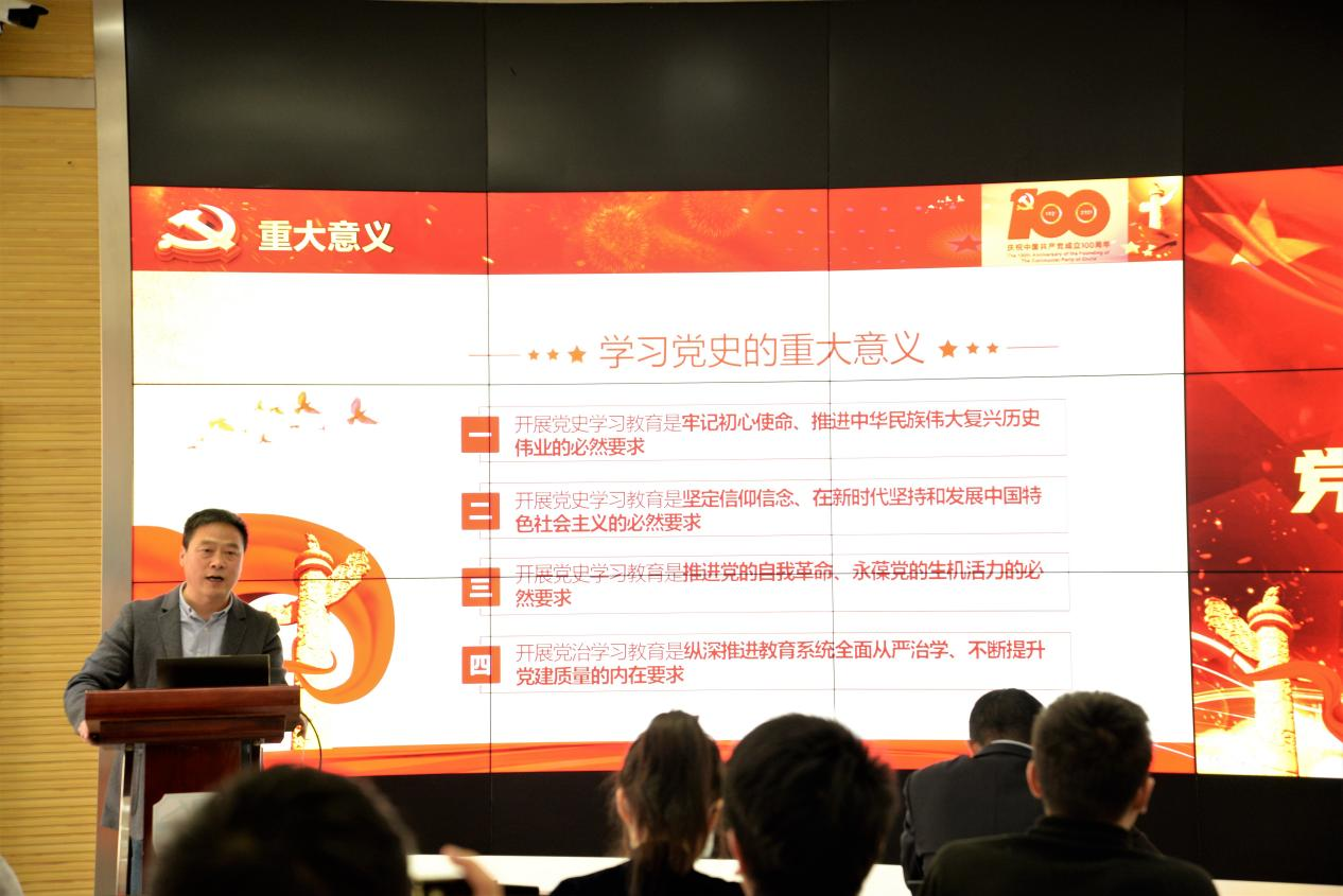关秦川阐明了学习党史的重大意义,还从基本原则、主要目标、学习要求、学习内容、开展项目等五个方面对学院学党史做出具体安排和要求,并要求全体党支部高度重视党史学习的推进和安排,注重学习效果,入脑入心接受党史教育。