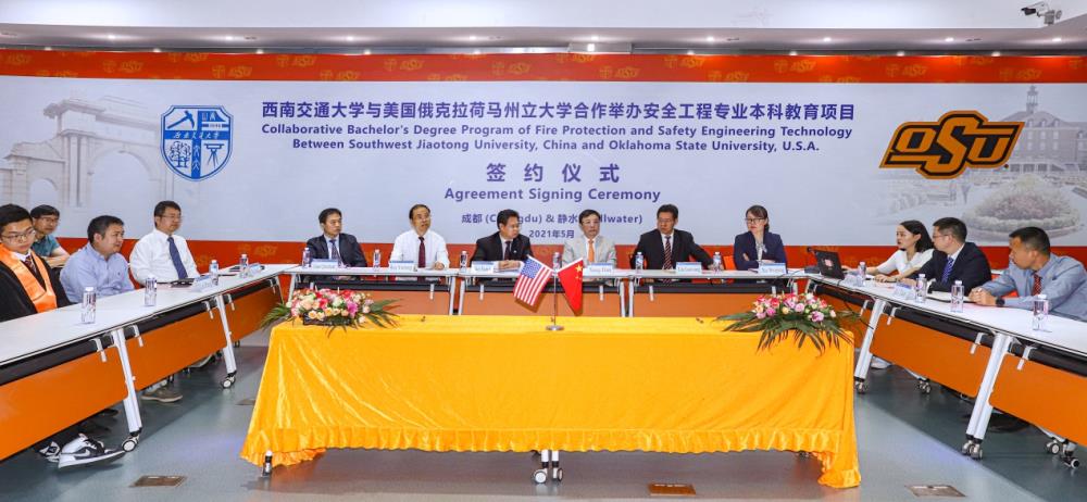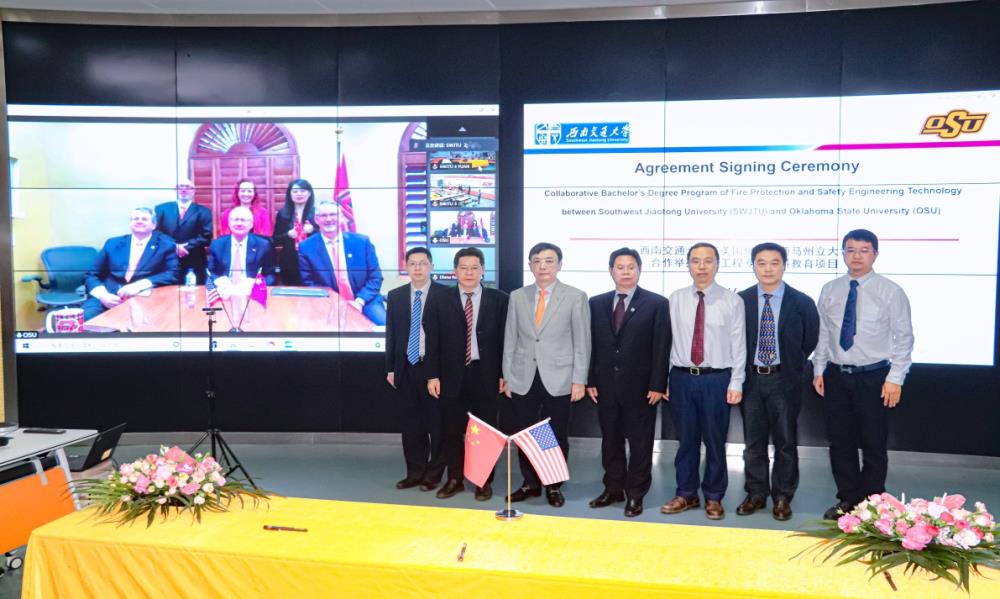 与美国俄克拉荷马州立大学合作举办安全工程专业本科教育项目签约仪式通过视频会议方式顺利举行。杨丹校长与Burns Hargis校长出席签约仪式,姚发明副校长主持签约仪式。