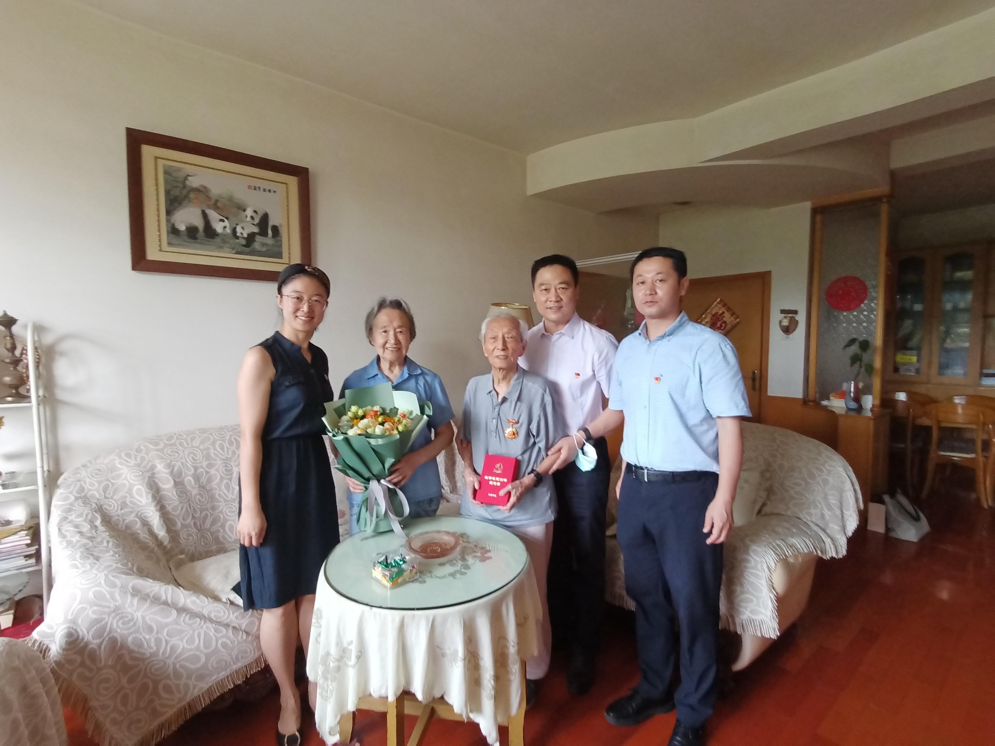 慰问中,关秦川代表学院党委详细询问老党员同志的生活与身体状况,并向他们致以节日的祝贺和衷心的问候。关秦川代表学院诚挚地感谢他们为学院发展所作出的积极贡献,分享通报了学院近期主要工作开展情况,并为老党员同志佩戴“光荣在党50年”纪念章并送上慰问金。关秦川表示,颁发“光荣在党50年”纪念章是中国共产党成立100周年庆祝活动的重要组成部分,充分体现了以习近平同志为核心的党中央对老党员、老同志的关怀和温暖,希望他们保重身体,安享幸福晚年。党员老同志们对党组织的关心表示感谢,在建党一百周年之际,对学院的发展寄予厚望,频频嘱咐,希望学院搞好发展,重视对青年人才的培养和关爱,并祝愿学院越来越好。