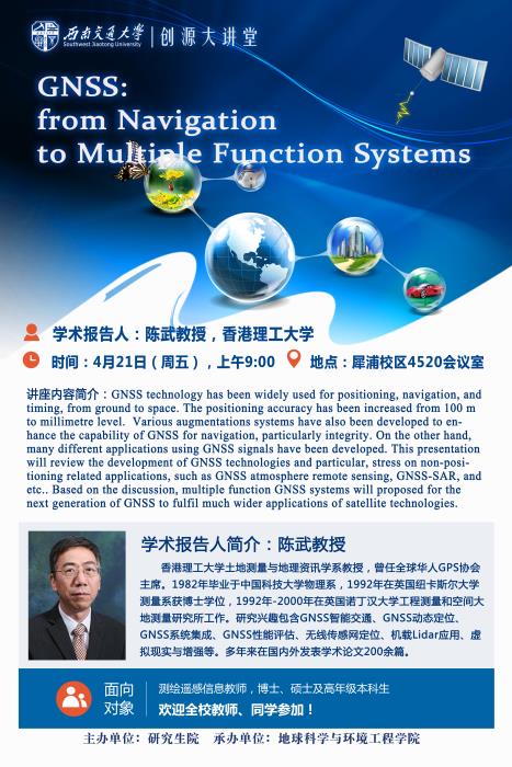 报告题目:GNSS: from Navigation to Multiple Function Systems