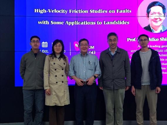 21日下午,Toshihiko Shimamoto教授作了题为“An Overview of Low to High-Velocity Friction Studies with Some Applications to Landslides”的精彩学术讲座。Shimamoto教授是国际断层和地震力学实验研究的领先学者,其开创性研发了独特的高速旋剪实验技术,成功解决了地震物理领域的众多热点问题。Shimamoto教授回顾了高速摩擦装置的发展历史,并且从野外实际证据出发,深入浅出地讲解了应用高速摩擦实验模拟自然断层和滑坡运动的可能性,揭示了摩擦熔融中的反馈过程和矿物相变。最后,展望了高速摩擦装置未来的发展方向,并对断层和滑坡的研究进行了展望。讲座结束后,Shimamoto教授与部分老师和学生留影纪念。