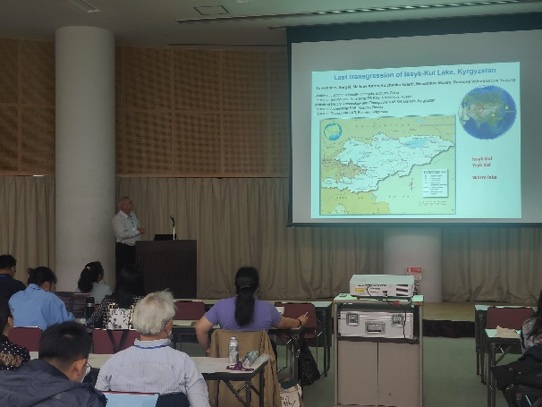 的Sergei教授和博士研究生吕毓东应邀参会,并作了多场专题报告。Sergei教授以《Reconstruction of Late Pleistocene glaciation at Turgen and Kharkhiraa mountain system in NW Mongolia》(蒙古西北部图尔根和哈尔希拉山系晚更新世冰川重建)开场,为大会拉开学术讨论的序幕。他的研究基于GIS技术和遥感数据,重建了图尔根和哈尔希拉山系的古冰川分布,揭示了晚更新世冰川覆盖区域、冰川体积和地貌演化的规律。他在另一场报告中以《Last transgression of Issyk-Kul Lake, Kyrgyzstan》(吉尔吉斯斯坦伊塞克湖最后一次湖侵)为题,介绍了通过多种年代测定技术重建的湖侵历史,提出了16世纪湖侵峰值导致沿岸环境剧变的结论。