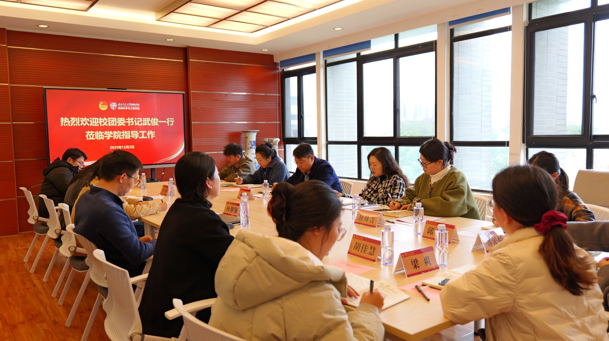 团委围绕“地新引力”品牌主线,工作基础扎实、建设思路清晰、活动开展丰富。同时,他对学院共青团工作提出三点希望:一要进一步强化思想政治引领,充分发挥“地新引力”育人品牌优势;二要持续重视科创竞赛的培育孵化,聚焦三大赛,瞄准专业优势,继续深耕、再创佳绩;三要充分发挥学院实践育人优势,围绕川藏铁路建设博士服务团、实践基地、社区公益等特色育人项目重点发力,奋力扩大实践“声量”。