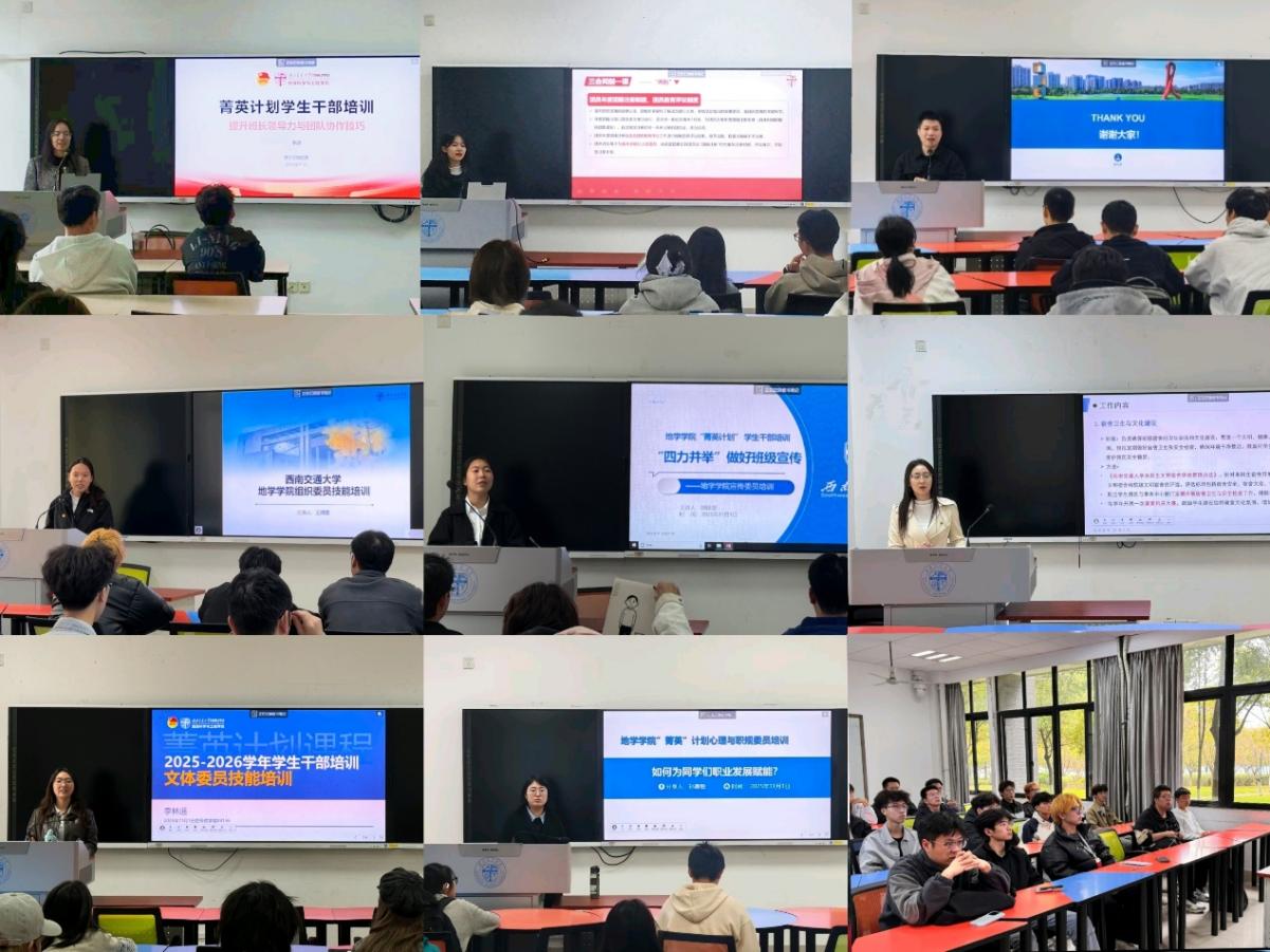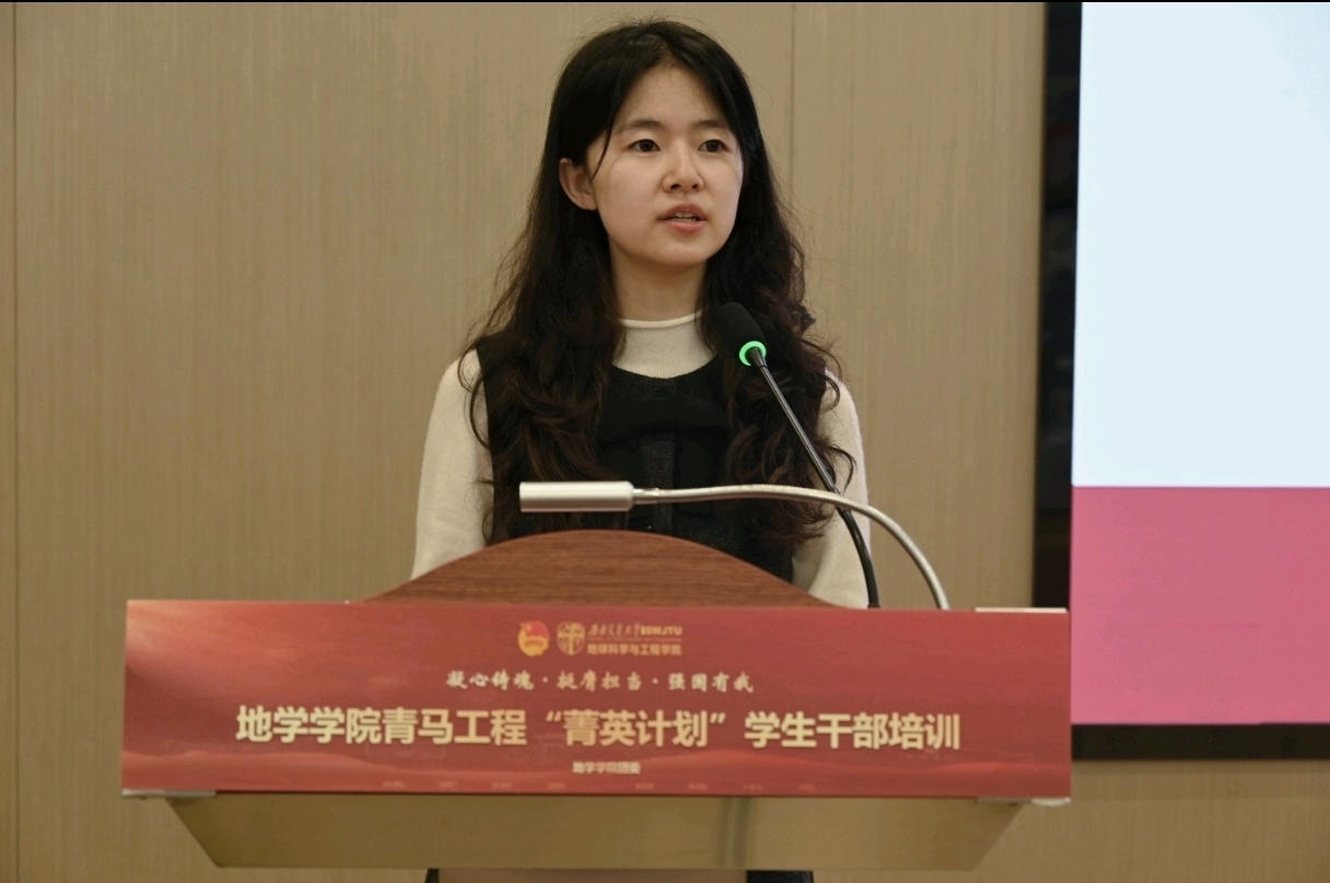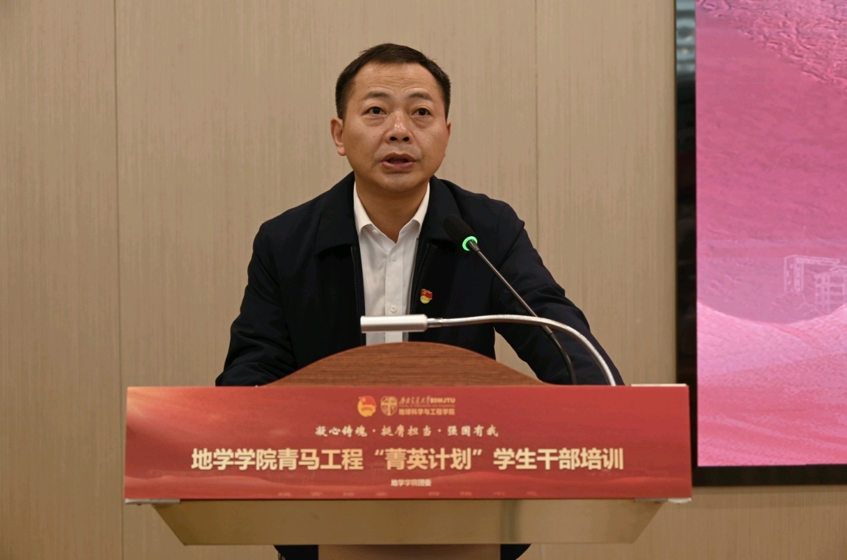 培训必修课上,曾洁副书记就《新时代地学青年的责任与担当》课题进行专题培训,系统阐述了学院以“地新引力”育人品牌为核心,通过强化思政引领、深耕文化实践、激励担当作为,着力培养青年学子立大志、明大德、成大才、担大任的育人路径与实践成效。杨都强老师围绕《争做新时代优秀学生干部》的课题强调学员应在思想引领、学风建设、实践服务等工作中发挥模范带头作用。